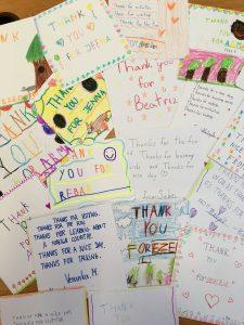 V pondělí 27.9. se i žáci 4. třídy na dvě hodiny zapojili do připraveného projektového den Dne jazyků. Jejich úkolem bylo najít 5 zahraničních hostů v budově školy a osvojenými frázemi o nich zjistit základní informace – jak se jmenují, kolik jim je let, co mají rádi, jaká je jejich oblíbená barva, zvíře……..Postupně se tak čtvrťáci seznámili s Jeenou z Indie, Beatriz ze Španělska, Ezequielem z Bolívie, Armanem z Arménie a Rebarem, který byl Kurd. Tato aktivita čtvrťáky nadchla a tak jako poděkování namalovali hostům Thank you card, které paní učitelka Stejskalová hostům zašle.