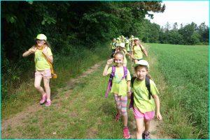 Pondělní horký den 28. června sice lákal spíše do bazénu, ale vycházka třešňovou alejí do „čarovného lesa“ se nedala odmítnout. Třešní bylo pro všechny dost a dost, takže o voňavé osvěžení cestou nebyla nouze. Alej se hemžila modrásky a zeleňásky a než jsme se nadáli, byla před námi senická skala, v ní lavičky přímo vybízely k usednutí a ke svačince. Nechybělo ani několik aktivitek, které procvičily naši pozornost, znalosti, zkušenost s ošetřením zraněných, přenášení zraněného, hra na noční přesuny – to když jsme si zavázali oči a plně důvěřovali svým vůdcům a mnoho jiného.
