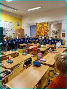 S takovým milým andělským poselstvím přilétlo 23 druháčků – andílků ve středu do 1. třídy. A víte proč? Přinesli svým menším kamarádům nové písmenko. První písmenko abecedy, první hlásku ze slova andílek, první i poslední hlásku slova aktovka…. Ano, je to A. Dnes již prvňáčci písmenko A poznají, vyhledají ho mezi ostatními písmenky, andílci je naučili krásnou básničku a všichni si poslechli příběh o písmenku A, které je i správným atletem – sportovcem. Kromě básničky dostal každý prvňáček i dopis plný písmenek, to největší z nich, A, si s pomocí andílků nalepili do sešitu a dokreslili si k němu pěkné obrázky. Po společné fotečce pro vzpomínku si všichni zasloužili dobrou svačinku. Moc děkujeme andílkům nejenom za písmenko, ale také za pomoc a za andělské kamarádství.