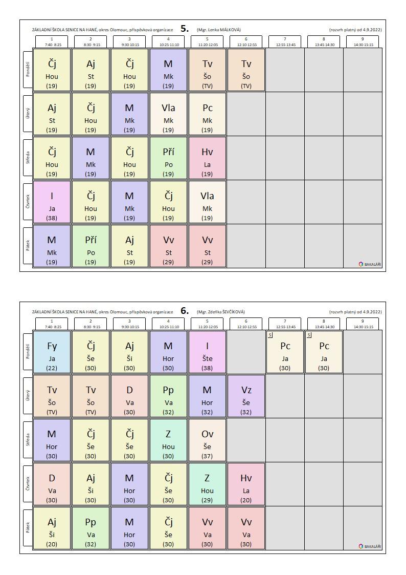 Rozvrh hodin, platný od 1. 9. 2022. Celý rozvrh ve formátu pdf najdete zde.