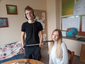 8. 4. 2022 V rámci výuky mediální výchovy jsme s redakcí Školníčku a dobrovolníky založili školní rádio. První nahrávka byla realizována v polních podmínkách opravované učitelské knihovny. Fotku najdete na konci. Těšíme se na další díly a nové hlasy 🙂